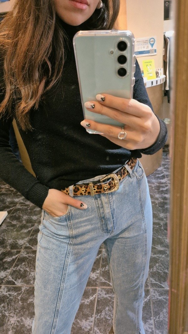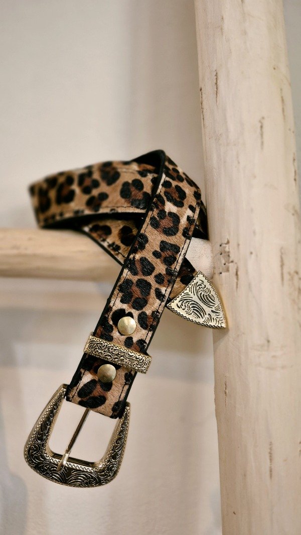 Cinto de cuero con hebilla dorada con pasador y puntera