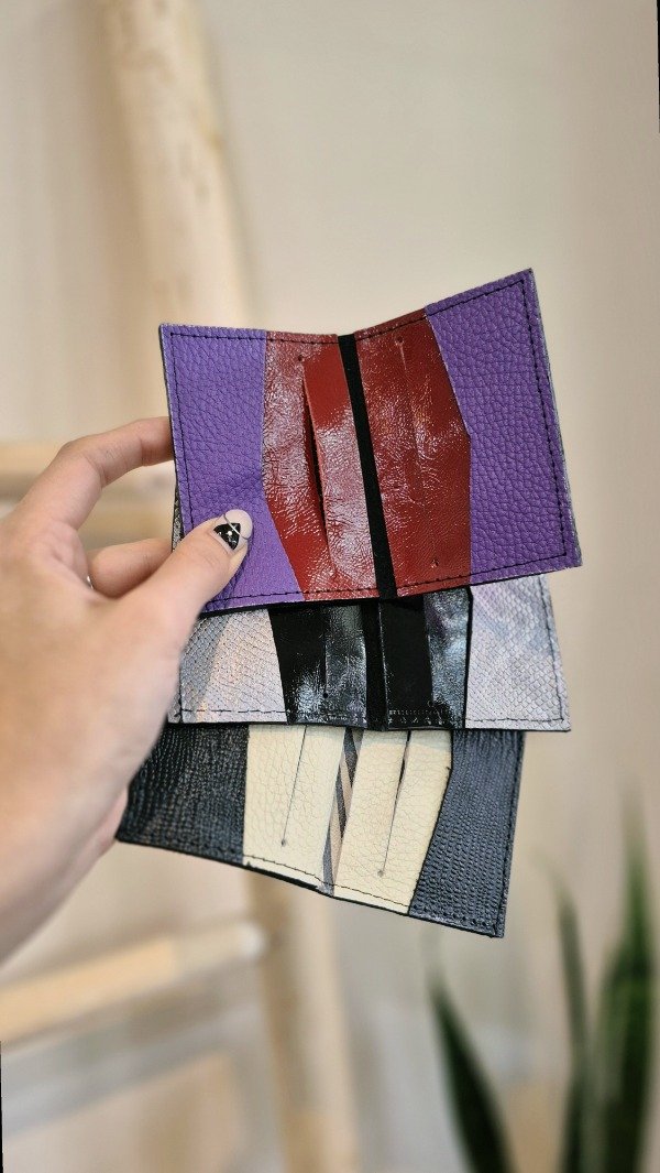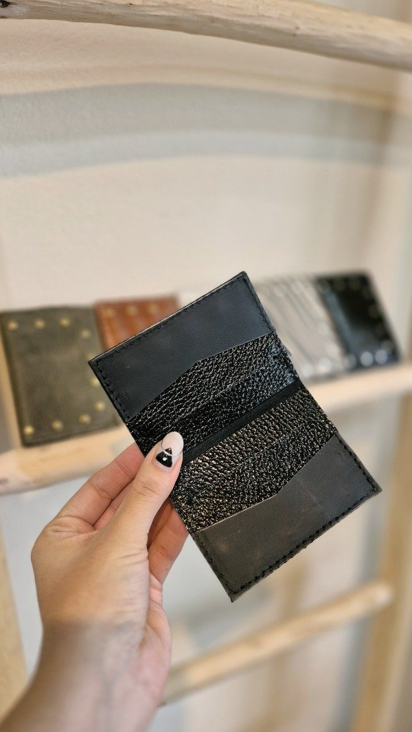 Tarjetero 100% cuero. Todos están combinados por dentro
