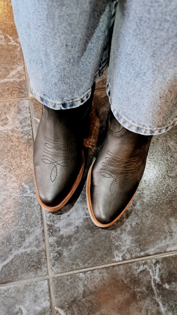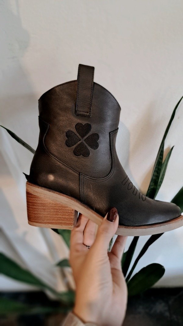 Bota texana 100% confeccionada en cuero vacuno bordada, hecho en forma artesanal en Argentina. Forreria en cuero vacuno. Base de goma antideslizante.