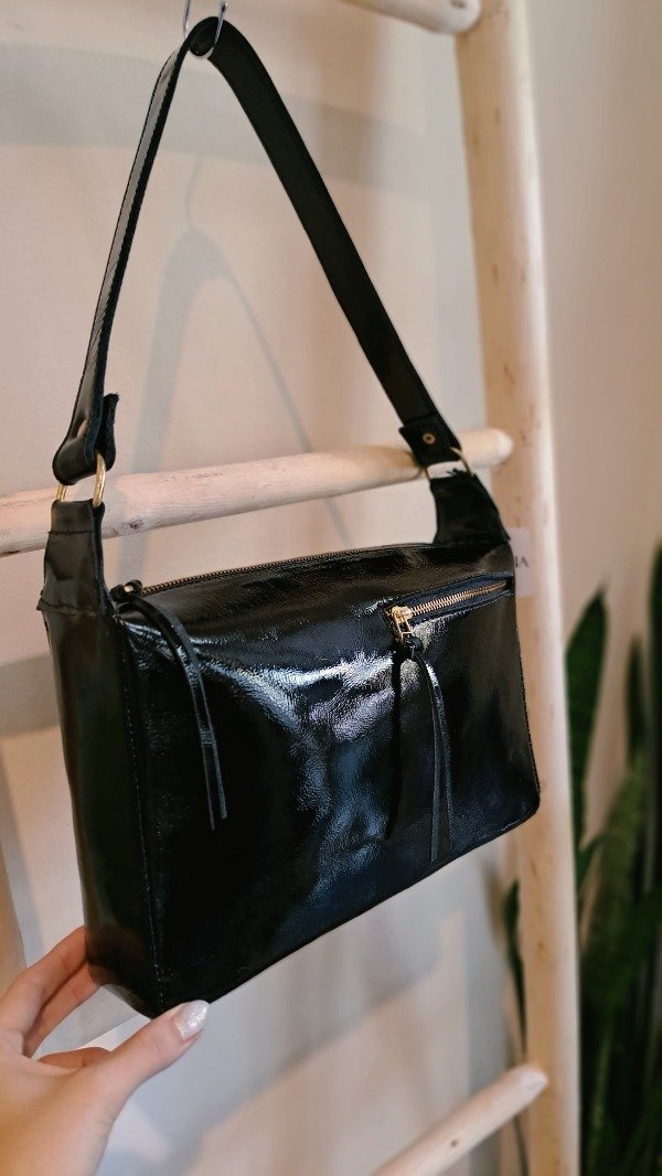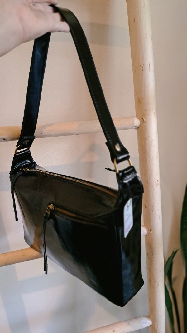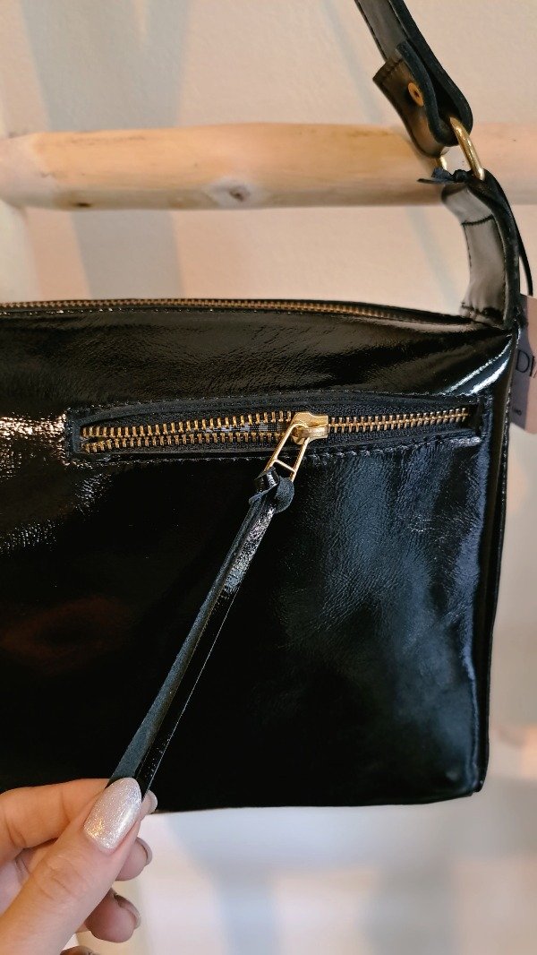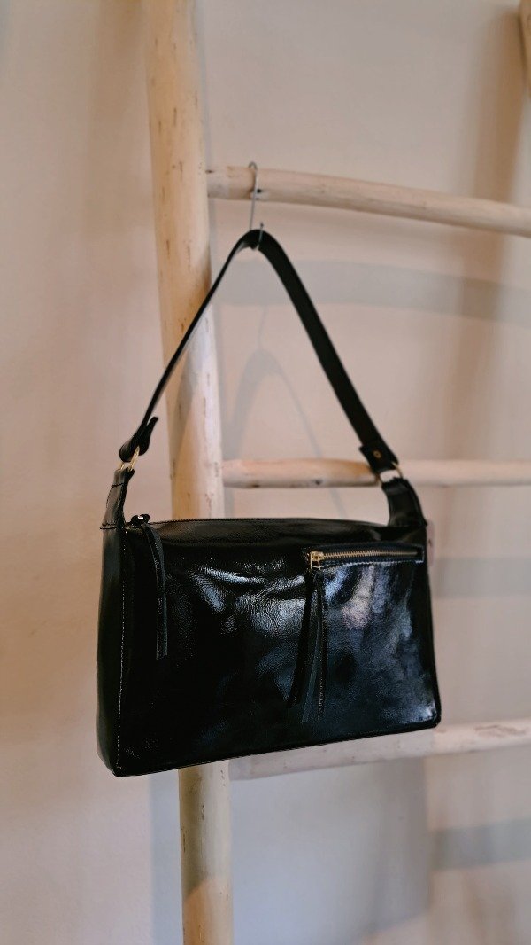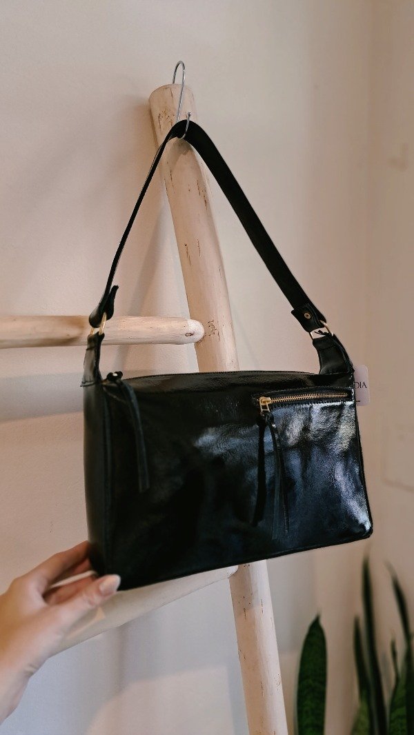 Cartera confeccionada 100% en cuero vacuno. Tipo baguette de base rectangular, con bolsillos delantero cierres metálicos YKK. Forrada interiormente con un bolsillo