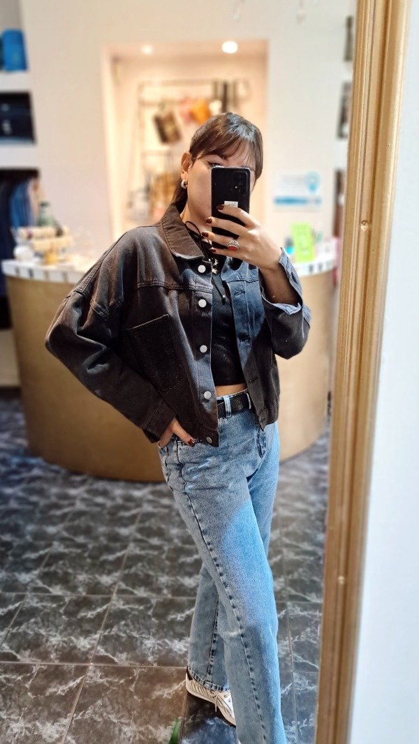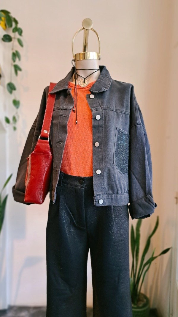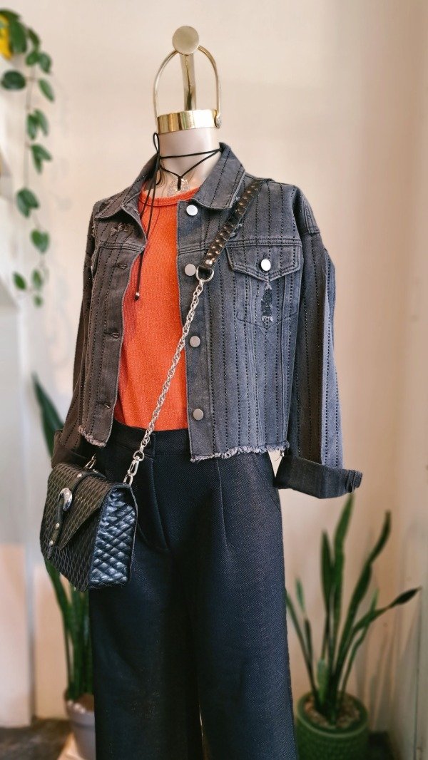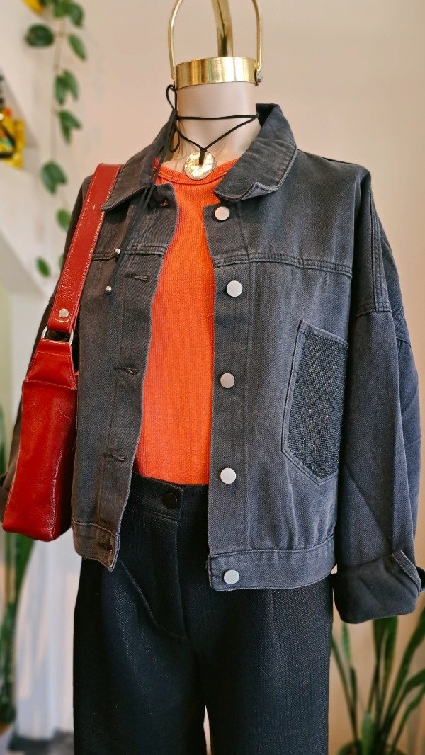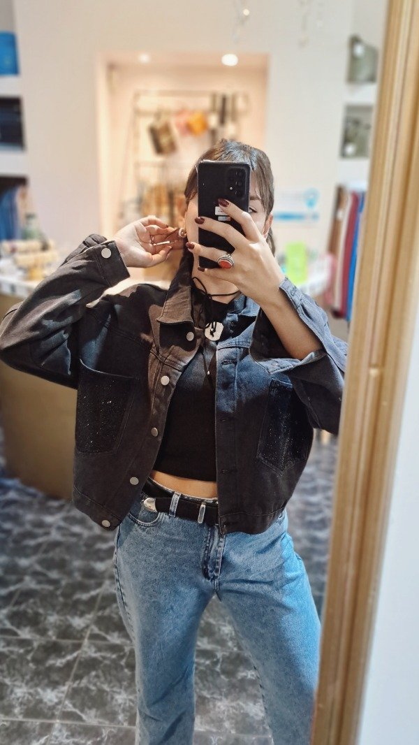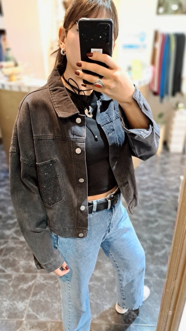 Campera Demin importada calidad premium. Detalle con brillos hot fix en los bolsillos. Modelo oversized.