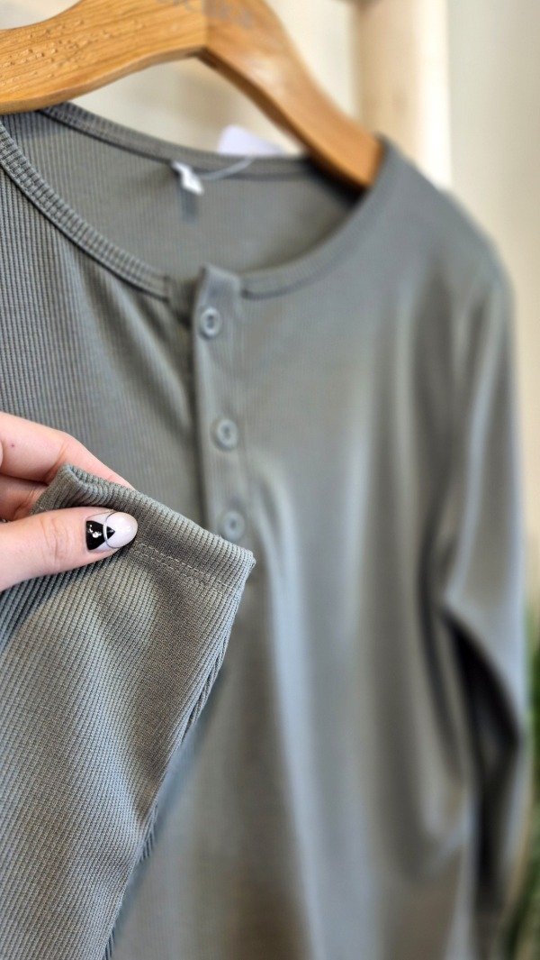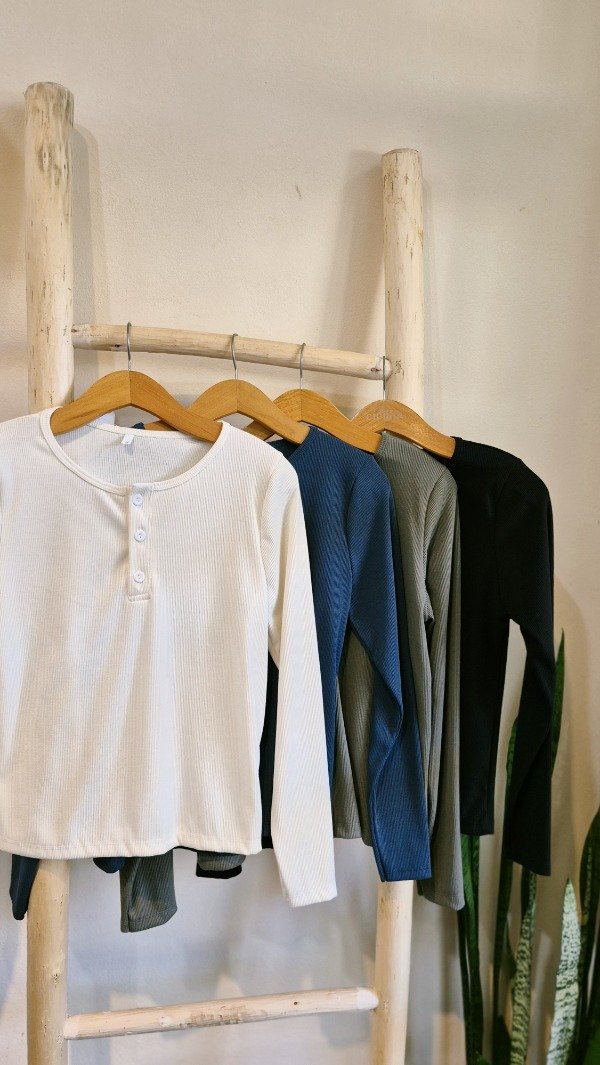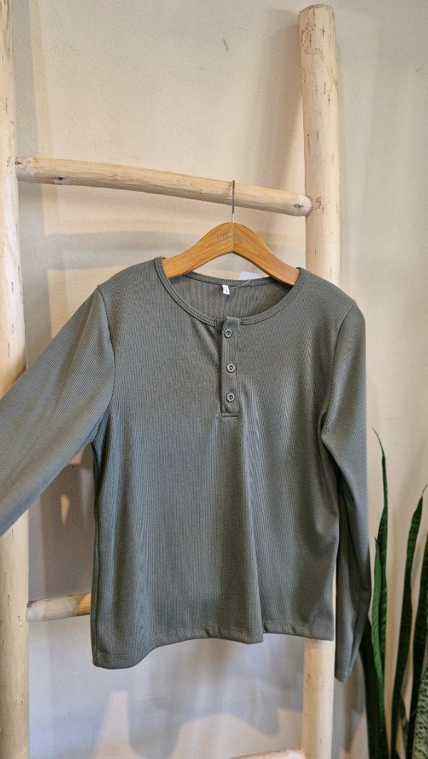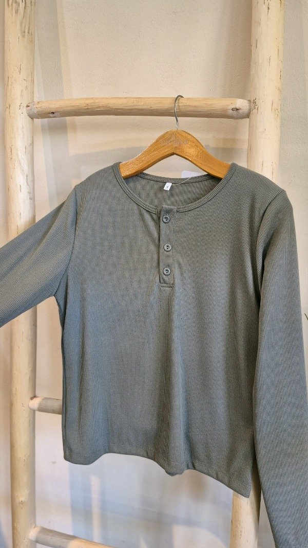 Remera mangas largas de morley con botones en el escote. Corte clásico