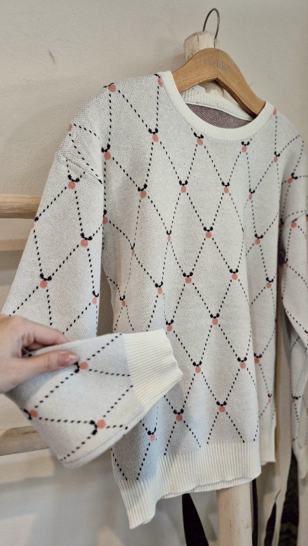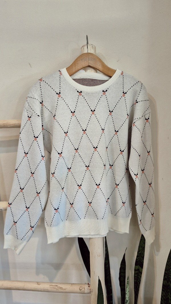Sweater cuello redondo tejido jacquard con motivo. Corte clásico
